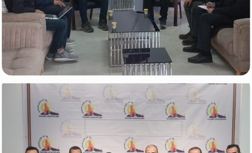 استقبل اتحاد المقاولين الفلسطينيين، في مقره الجديد بمدينة غزة، وفدًا من الهيئة العربية للإعمار في فلسطين، وذلك لبحث آليات التعاون المشترك في حصر أضرار المقاولين.