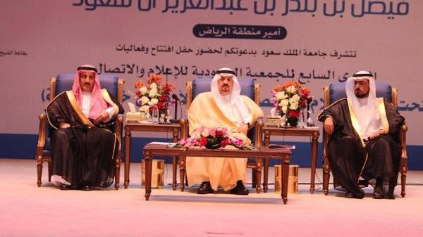 افتتح الأمير فيصل بن بندر بن عبدالعزيز، أمير منطقة الرياض، اليوم الاثنين، فعاليات المنتدى السابع للجمعية السعودية للإعلام والاتصال الذي تنظمه الجمعية تحت عنوان "الإعلام والاقتصاد.. تكامل الأدوار في خدمة التنمية" بجامعة الملك سعود.