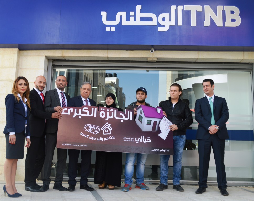 أعلن البنك الوطني نتيجة السحب على الجائزة الكبرى الثانية ضمن برنامج التوفير الأول للمرأة الفلسطينية "حياتي"، بفوز موسى رحال من فرع بيت لحم ببيت وراتب طول العمر وحيث أن قوانين البرنامج تقتضي أن تكون الجائزة من نصيب أنثى، اختار رحال ابنته نادين لتكون الجائزة من نصيبها.