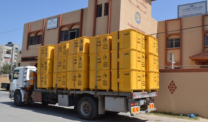 ويأتي هذا المشروع في إطار دعم قطاع النفايات الصلبة وكذلك مساعدة البلدية في تعويض جزء من الحاويات التي دمرها الاحتلال (الاسرائيلي) خلال عدوانه الأخير على قطاع غزة 2014م.