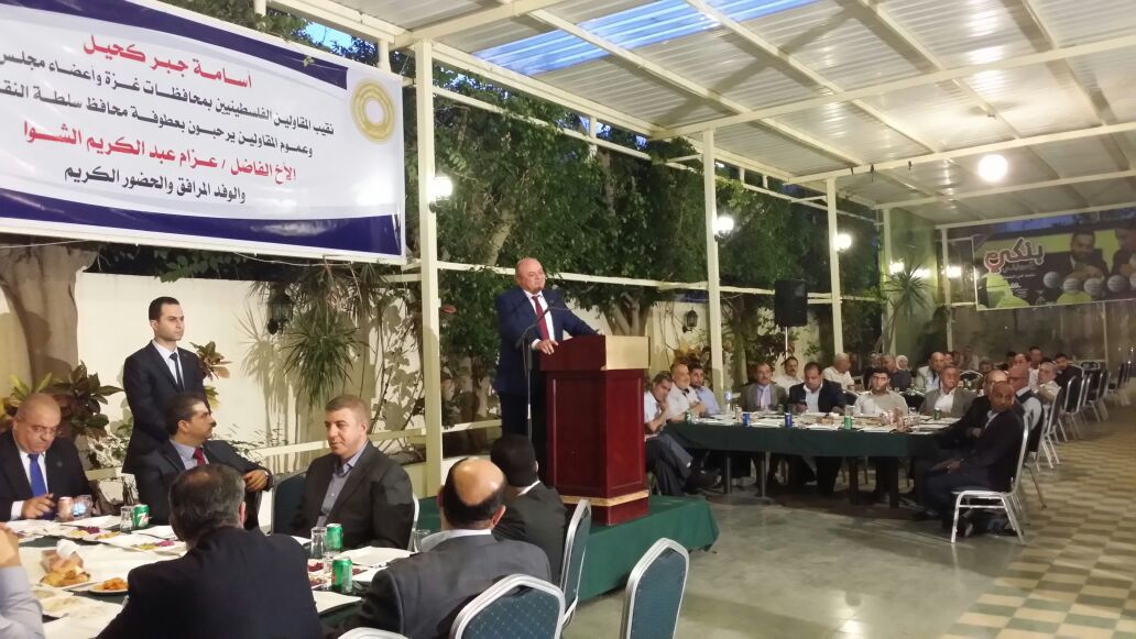 عقد معالي المحافظ لقاء مع اتحاد المقاولين بدأ بكلمة ترحيبية من السيد أسامة كحيل نقيب المقاولين في قطاع غزة بمعالي المحافظ ورئيس اتحاد المقاولين في الضفة السيد مروان جمعة والوفد المرافق له، مشيداً باهتمام سلطة النقد ومحافظها بكافة القطاعات الاقتصادية وحرصها على التواصل مع الجميع والاستماع إلى المشاكل التي تعترض عملهم وخاصة فيما يتعلق بالبنوك.