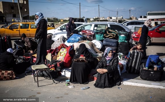 المسافرين في الباصات الثلاث الأولى في اليوم الأول التوجه للصالة الخارجية في معبر رفح.