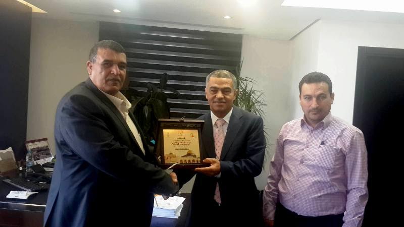وقد قدم اتحاد المقاولين ممثلا برئيس الاتحاد المهندس مروان جمعة درعاً تكريمياً للسيد المدير العام للبنك سامي صعيدي وشكر البنك على دعمه السخي لهذه الفعالية .آملاً أن يشكل هذا اللقاء "لقاء التميز والابداع" دفعة ايجابية لنا جميعا في خدمة قضايانا وفي مقدمتها بناء دولة فلسطين