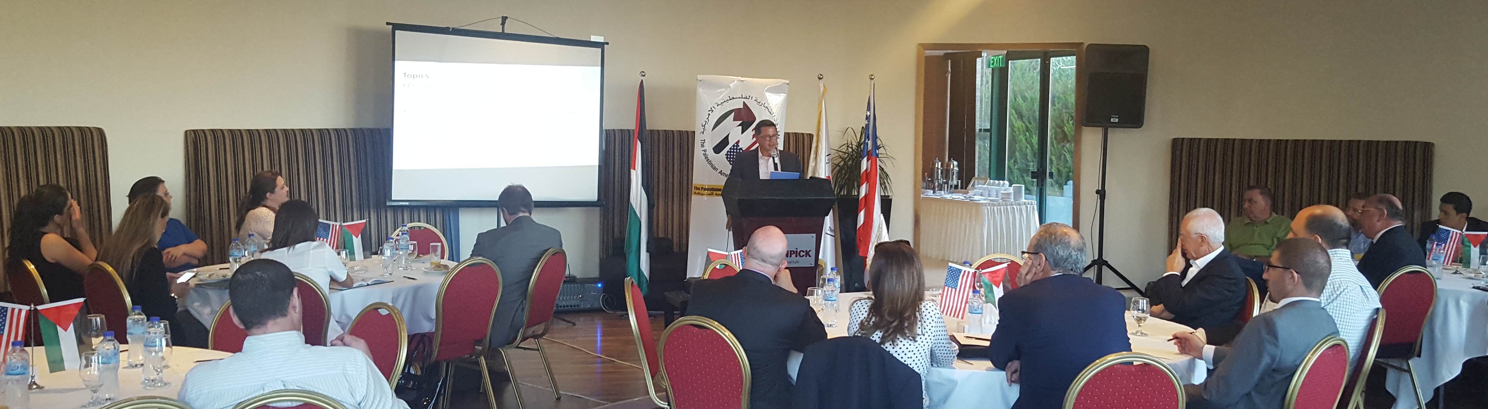 نظمت الغرفة التجارية الفلسطينية الأمريكية، مؤخراً، في رام الله، ندوة بعنوان "الإنتخابات الأمريكية ومستقبل المشهد السياسي"، شارك فيها أعضاء الغرفة وبعض الشخصيات السياسية والإقتصادية الفلسطينية.