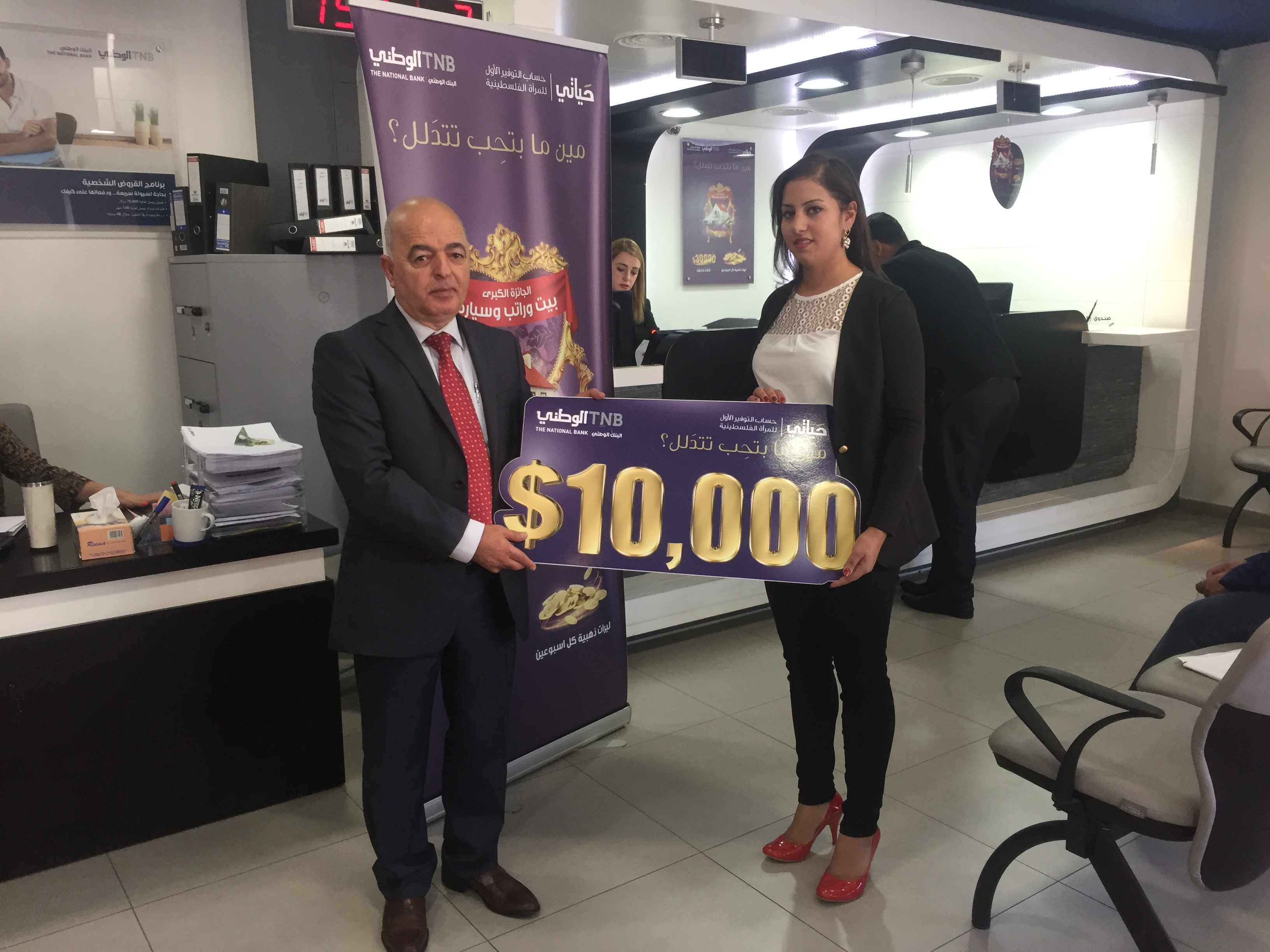 أعلن البنك الوطني نتائج السحب السابع ضمن برنامج التوفير الأول للمرأة الفلسطينية "حياتي"، والذي تضمن السحب على جائزتي ال 10 آلاف دولار نقدا والليرات الذهبية، حيث فازت كل من ميس اسعيد من فرع الميدان بالجائزة النقدية بقيمة 10آلاف دولار، وأمل خربثاوي من فرع الرام بثلاث ليرات ذهبية.