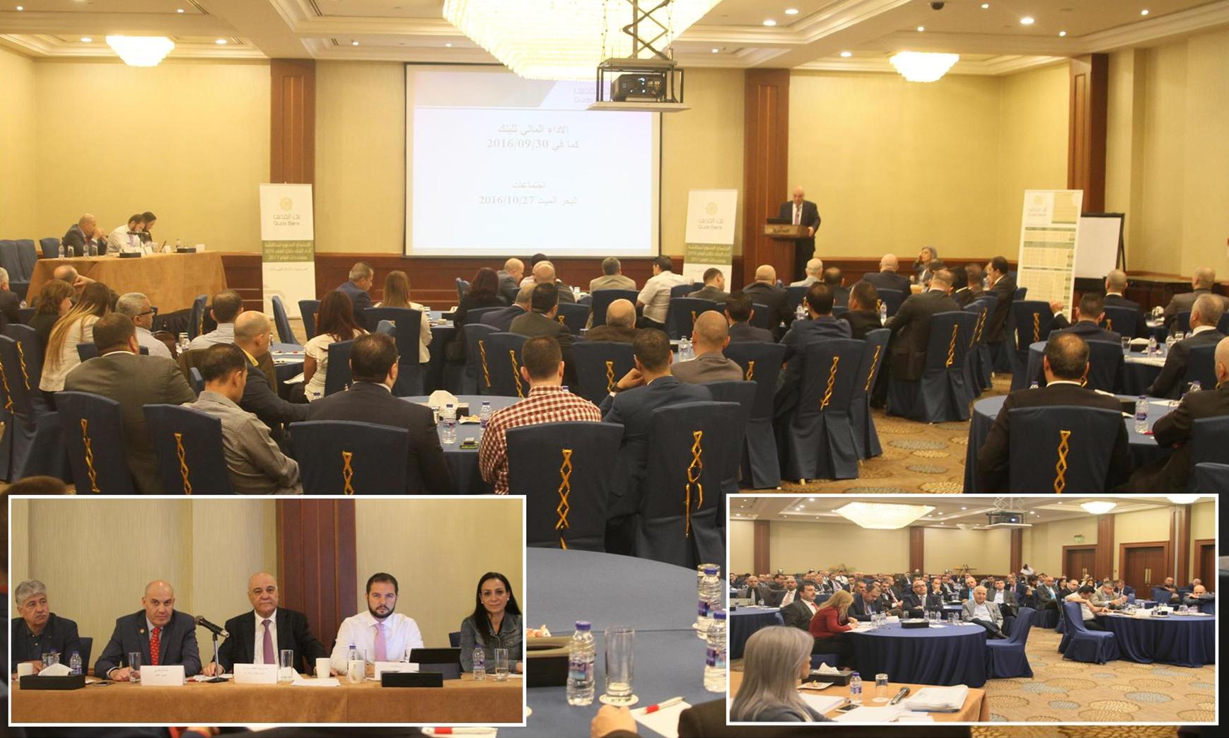 وافتتح الاجتماع بكلمة لرئيس مجلس الإدارة أكرم عبد اللطيف جراب، الذي أشاد بالإنجازات التي حققها البنك، وقدرته على التوسع وإيصال خدماته ومنتجاته إلى شريحة أوسع من المواطنين، منوهاً إلى أن الإنجازات التي حققها البنك والتي شملت كافة المؤشرات وأبرزت مدى الإمكانيات الكبيرة التي يتمتع بها، ورؤية إدارته التي تسعى دوما إلى أن تكون عند مستوى الآمال الكبيرة المعقودة عليها .