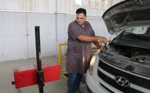 وأضاف: "يتم فحص العفشات والفرامل والكهرباء والصالون الداخلي والخارجي والغمازات والمساحات والهاند بريك والجير وفحص تسريب الزيت، ويتم إعطاء نسبة لصلاحية سير المركبة وفي حال وجود أي مشاكل كبيرة بالمركبة يتم توقيفها بحيث تقوم الإمداد والتجهيز بإصلاح الأعطال فيها وفحصها مرةً أخرى في محطة الفحص".