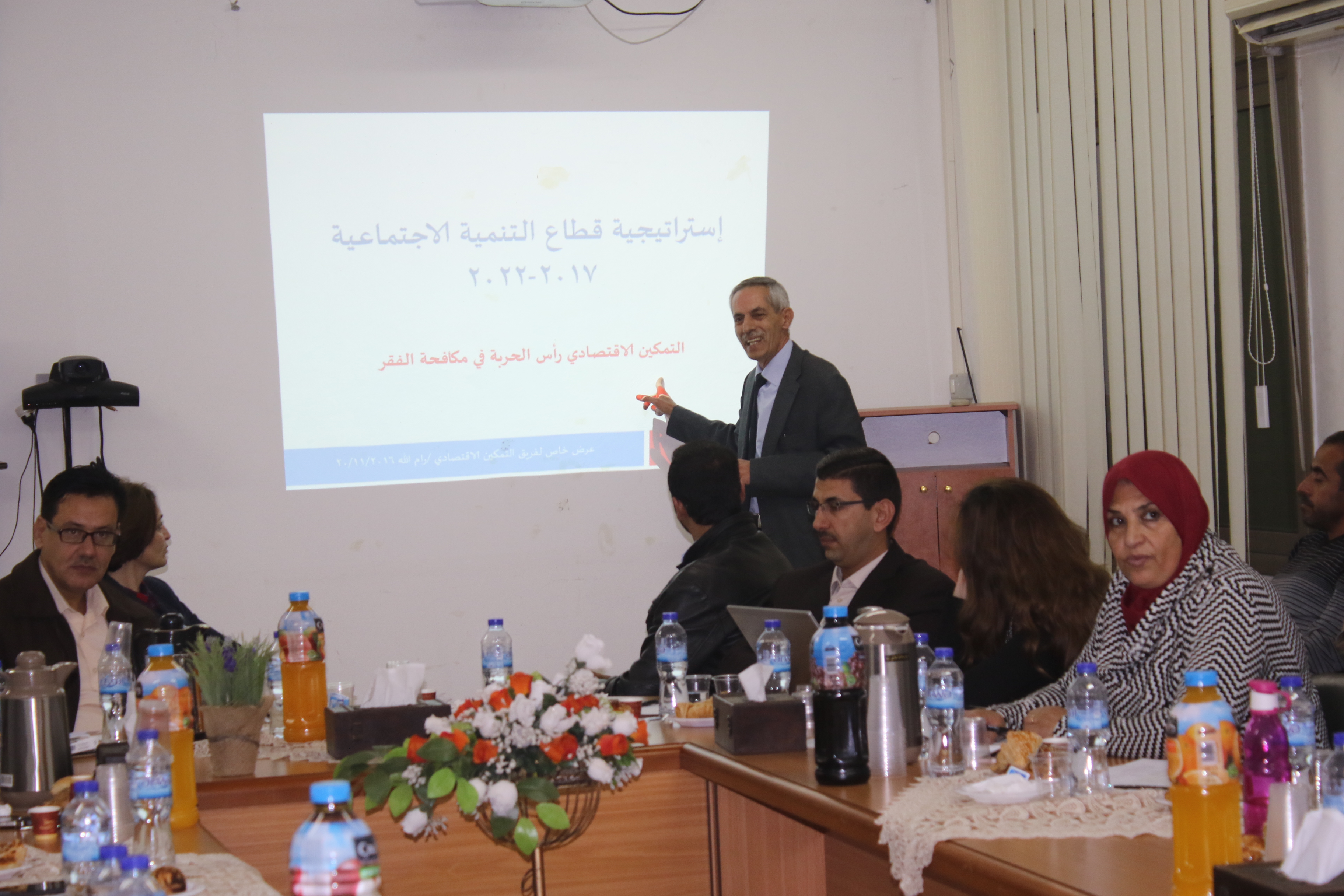وحضر اللقاء وكيل الوزارة الدكتور محمد أبو حميد وعدد من كبار موظفي الوزارة ضم داوود الديك الوكيل المساعد للتنمية الادارية والتخطيط ومستشار الوزير لشؤون البرامج وخالد البرغوثي نائب مدير عام مكافحة الفقر وسامر علاونة مدير برامج التمكين الاقتصادي، وباسمة صبح رئيسة وحدة العلاقات العامة والإعلام.