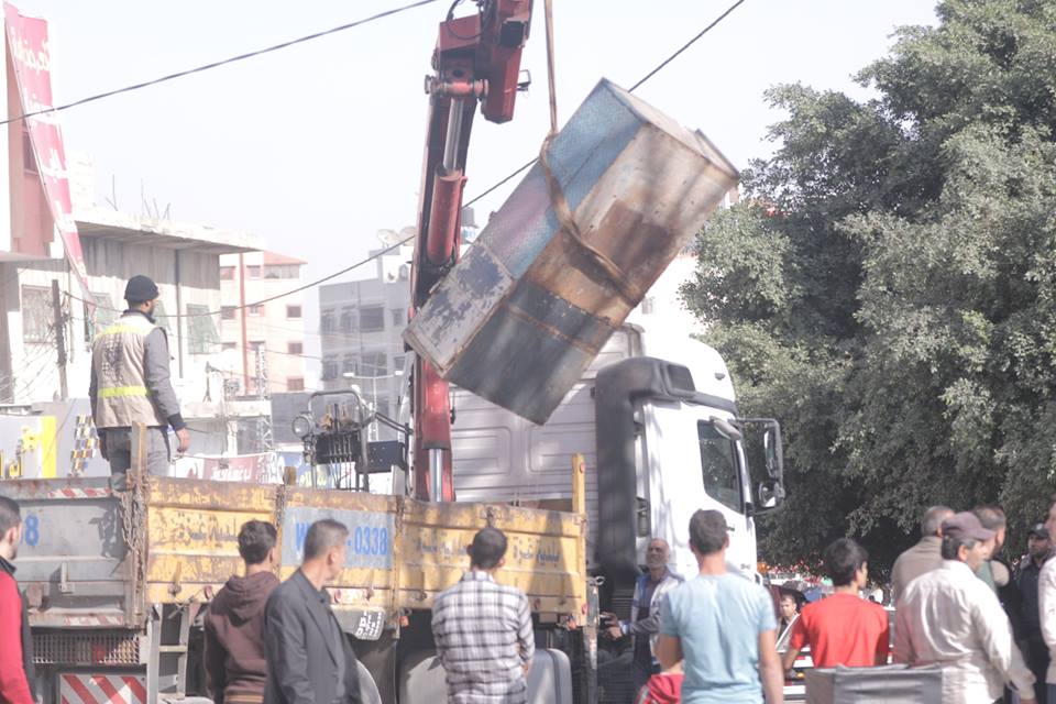 بدأت دائرة النظام والإنضباط في بلدية غزة بإزالة تعديات المحلات التجارية على الأرصفة في شارع عمر المختار ضمن جهودها لتنظيم شوارع المدينة وتسهيل حركة مرور المواطنين .