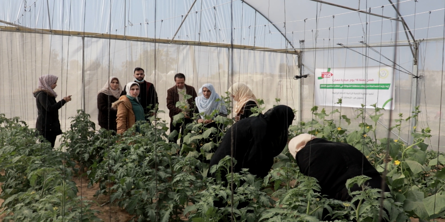 وتضمنت المبادرة الزراعية قطف ثمار البندورة والخيار والفلفل وذلك لتمكين المزارعات في الاستمرار بالعملية الإنتاجية ومواصلة زراعة أرضهم.
