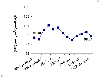 سجل الرقم القياسي العام لأسعار المنتج انخفاضاً مقداره 0.45% خلال شهر تشرين ثاني 2021 مقارنة مع شهر تشرين أول 2021أ، حيث بلغ الرقم القياسي العام 99.71 خلال شهر تشرين ثاني 2021 مقارنة ﺒ 100.16 خلال شهر تشرين أول 2021 (سنة الأساس 2019 = 100).