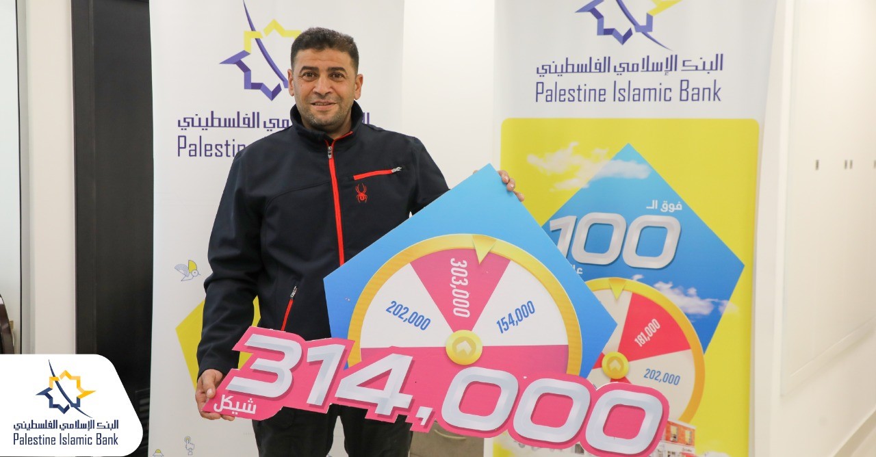 سلم البنك الإسلامي الفلسطيني الجائزة النقدية السادسة لحملة حسابات التوفير "فوق الـ 100.. عالأكيد.. كل مرة رقم جديد" وقيمتها 314,000 شيكل للفائز يوسف علي حسين برادعية من محافظة الخليل.