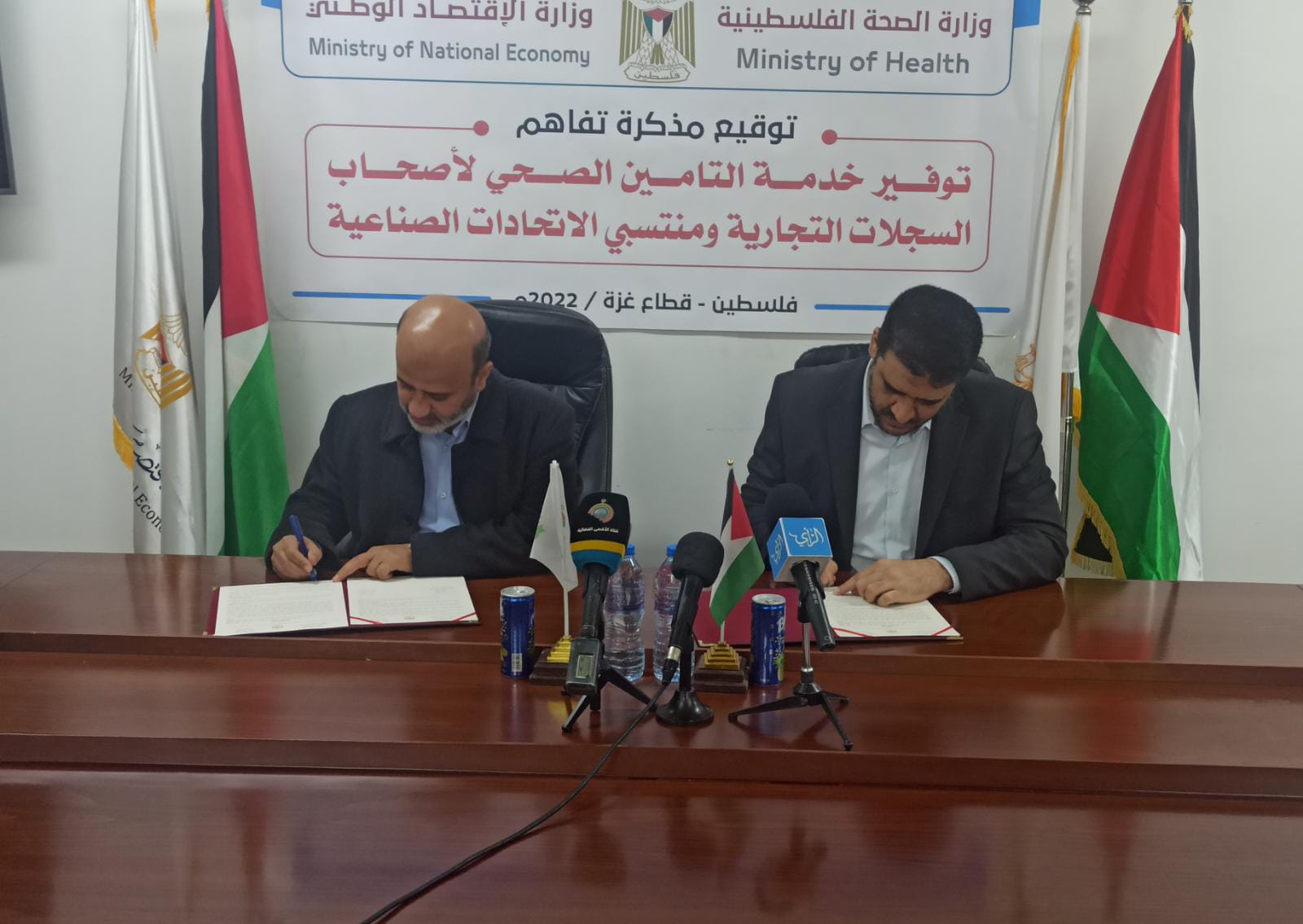 وقعت وزارة الاقتصاد الوطني ووزارة الصحة الفلسطينية مذكرة تفاهم تنص على تقديم الخدمات الصحية لأصحاب السجلات التجارية ومنتسبي الاتحادات الصناعية.