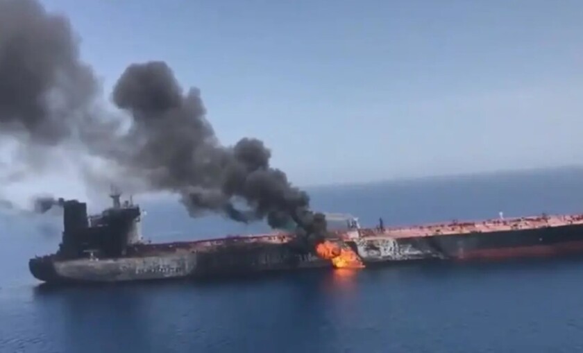 وأفادت وكالات الأنباء بتضرر ناقلتَي نفط حتى الآن نتيجة الهجمات الإيرانية قرب مضيق هرمز.