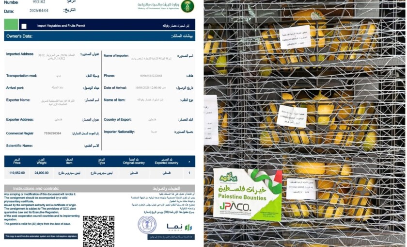 ودعا الوزير سليمية المصدّرين إلى الشروع الفوري في إجراءات التصدير، والاستفادة من هذه الفرصة الاستراتيجية لفتح أسواق جديدة أمام المنتجات الفلسطينية، بما يساهم في دعم صمود المزارعين في ظل التحديات الراهنة.